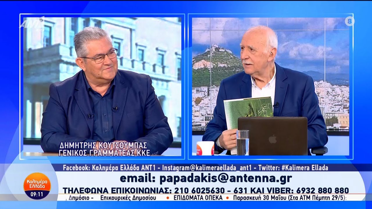 – Έχουμε τη χαρά να έχουμε μαζί μας τον ΓΓ της ΚΕ του ΚΚΕ, τον κύριο Δημήτρη Κουτσούμπα. Κύριε Πρόεδρε, κύριε Γενικέ, καλημέρα σας. Έχω μάθει από τα προεδρηλίκια γιατί στην Ελλάδα έτσι και βγεις και φωνάξεις Πρόεδρε, θα γυρίσουν όσοι βρίσκονται στην Ομόνοια. Τι κάνετε;